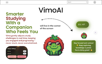 VimoAI هو إضافة مجانية لمتصفح Chrome مصممة لتعزيز التركيز والإنتاجية من خلال تقنية بومودورو. تحتوي على حيوان أليف افتراضي يشجع المستخدمين على البقاء على المهمة مع توفير تجربة ممتعة وجذابة. يسمح مؤقت بومودورو للمستخدمين بإدارة جلسات دراستهم بفعالية، مكافأتهم بالعملات عن كل جلسة مكتملة. يعزز هذا الجانب من الألعاب الدافع وإحساس الإنجاز.
